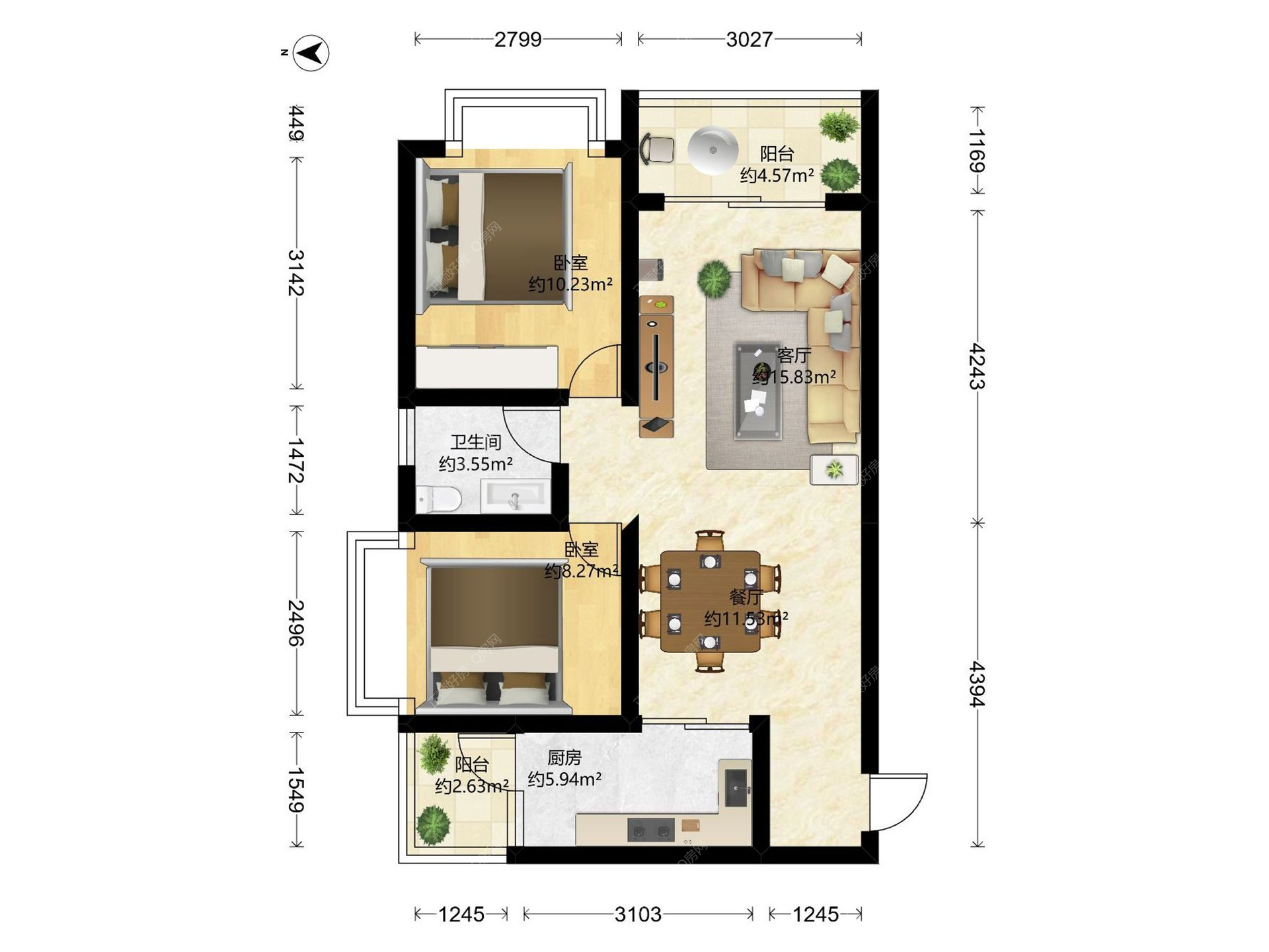 2房2厅1卫
