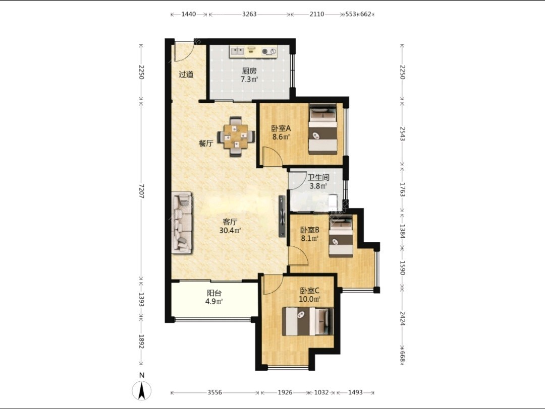 3房2厅1卫