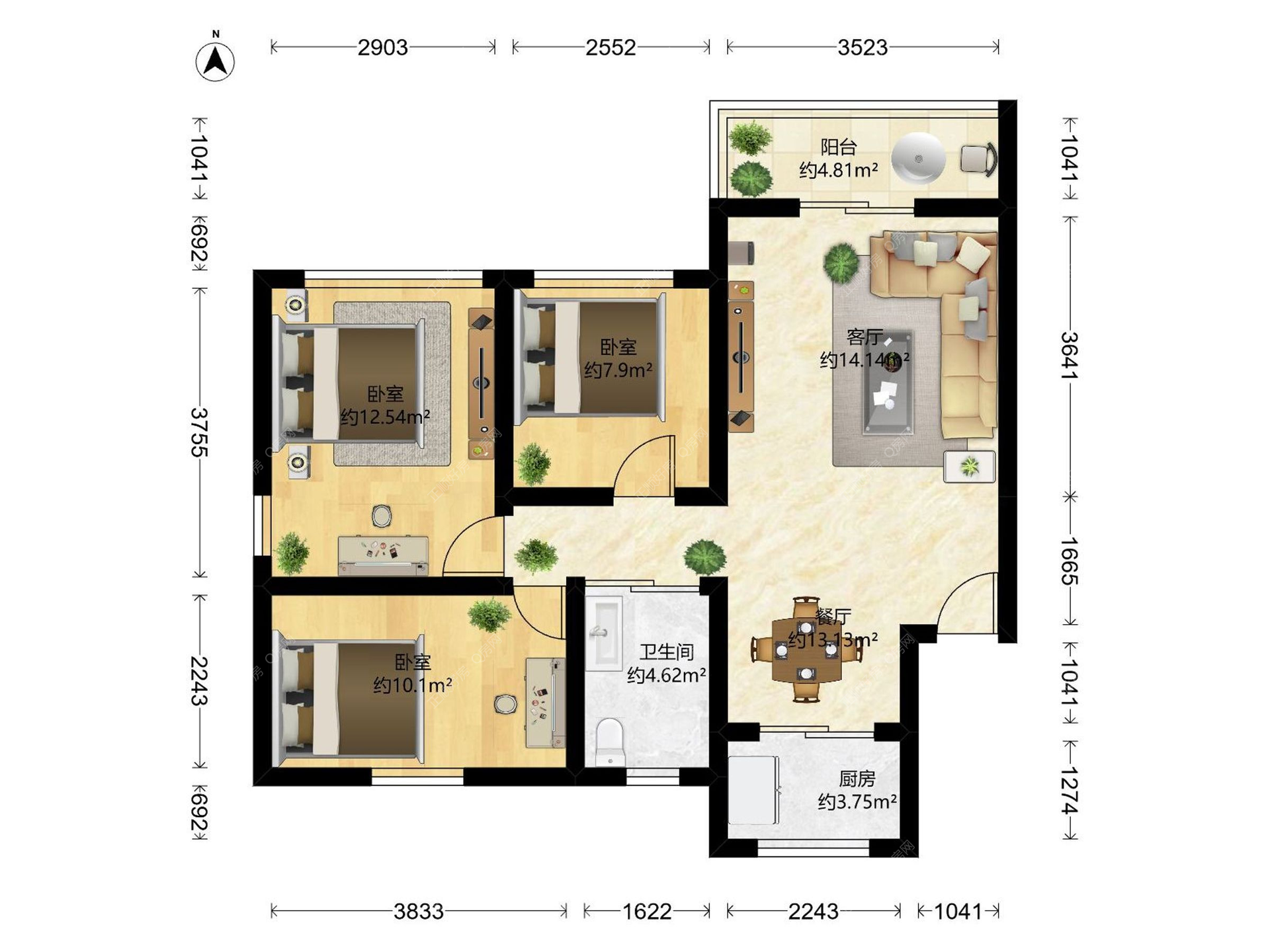 3房2厅1卫
