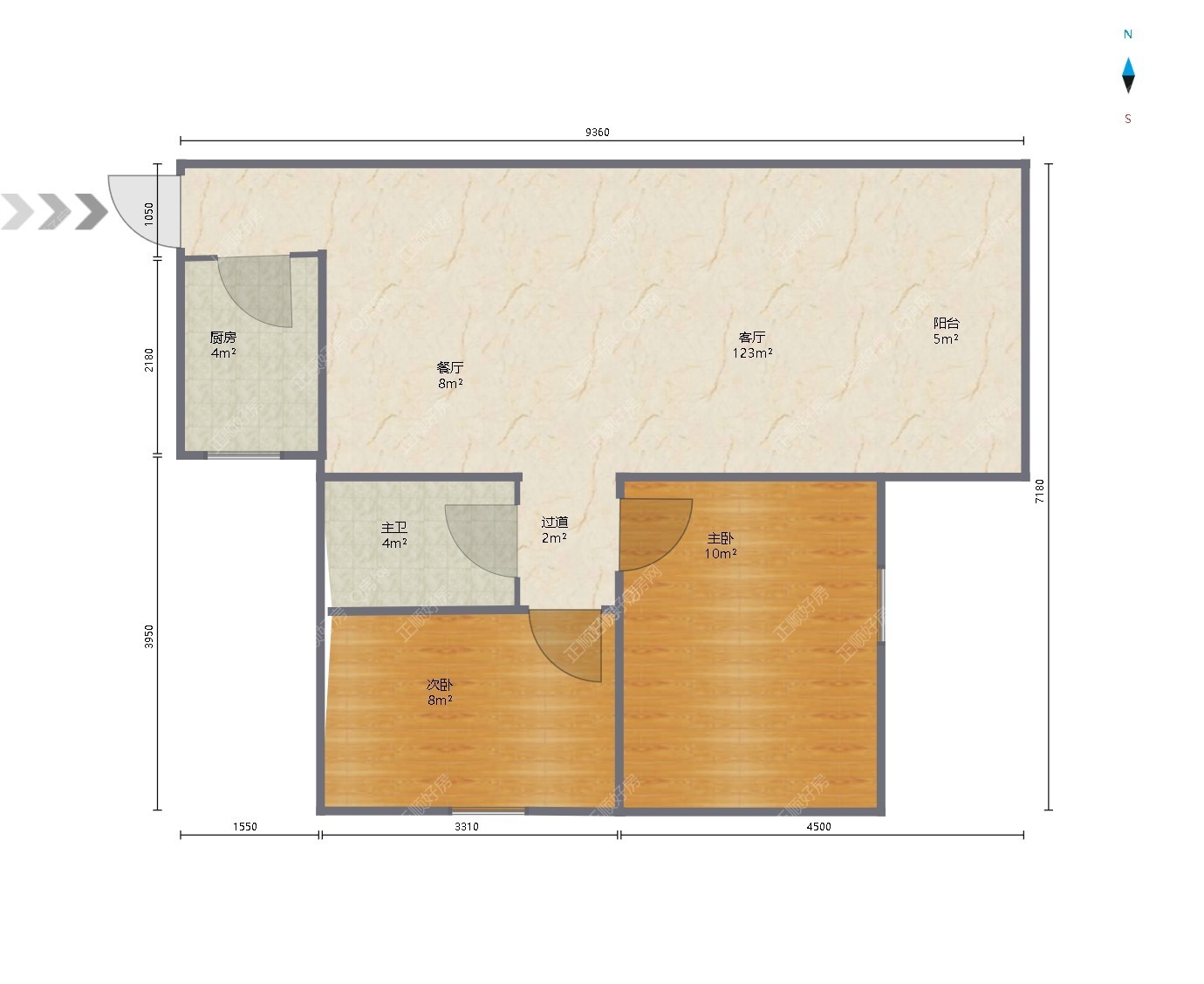 2房2厅1卫 | 66 ㎡ | 东