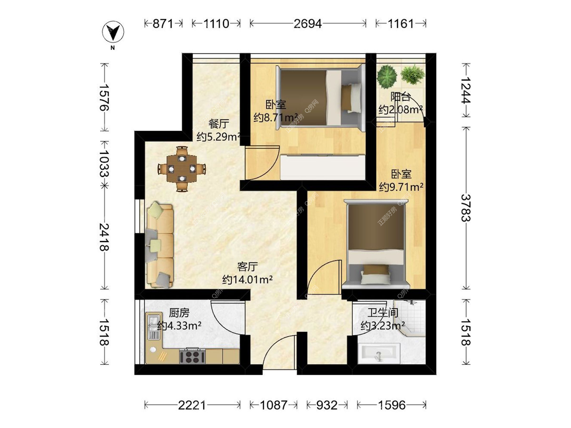 2房1厅1卫