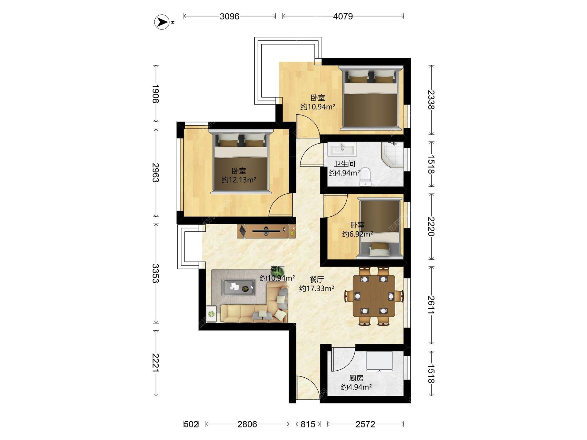 3房2厅1卫