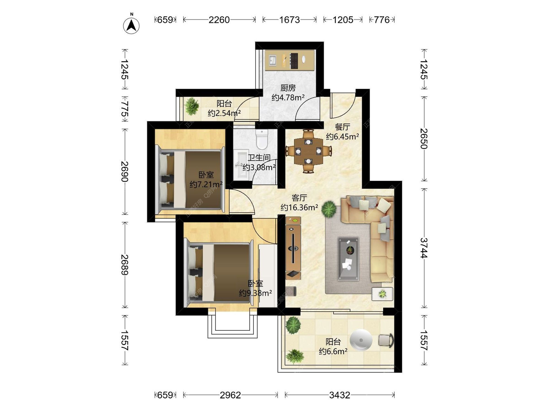 2房2厅1卫