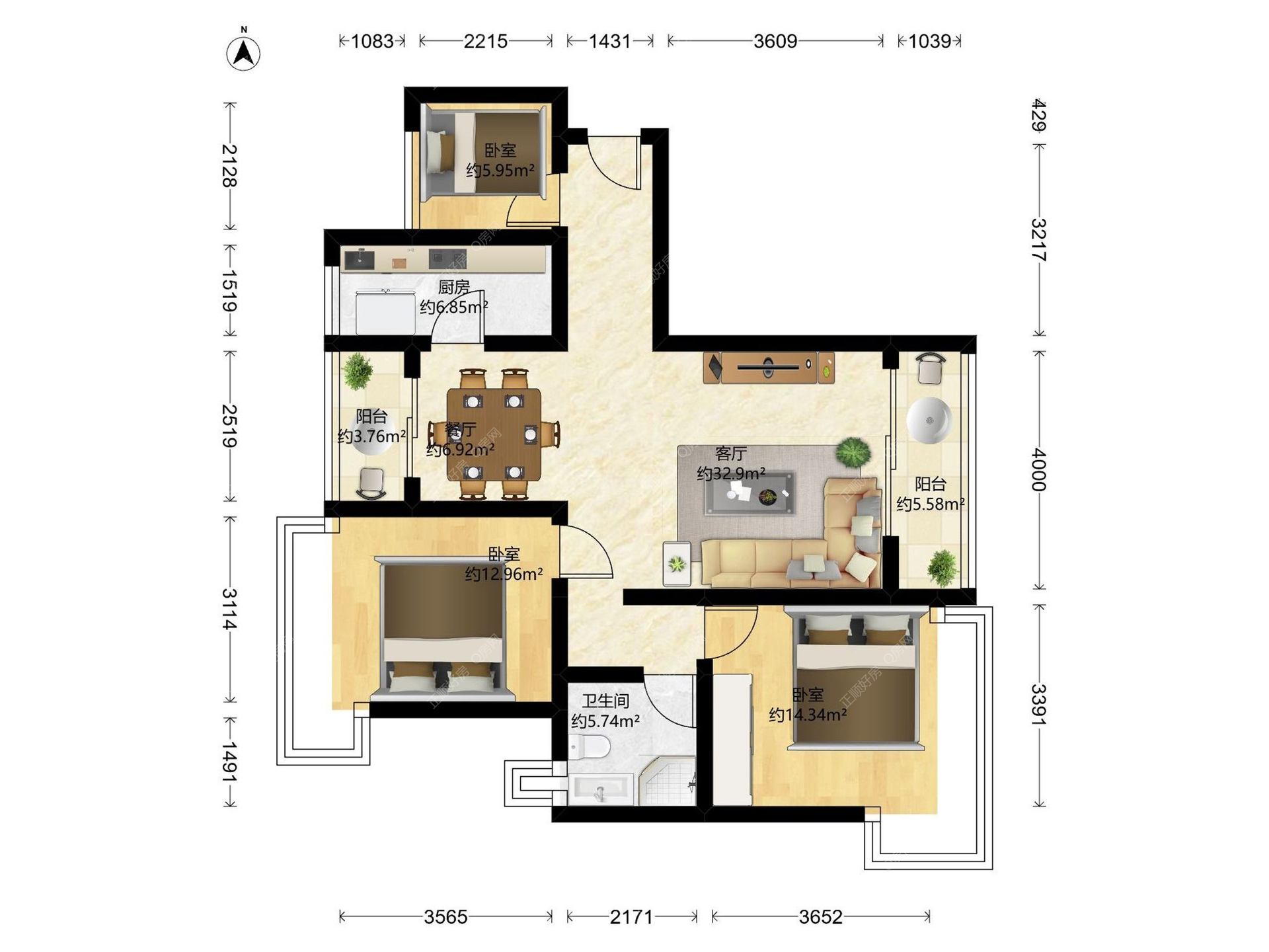 3房2厅1卫