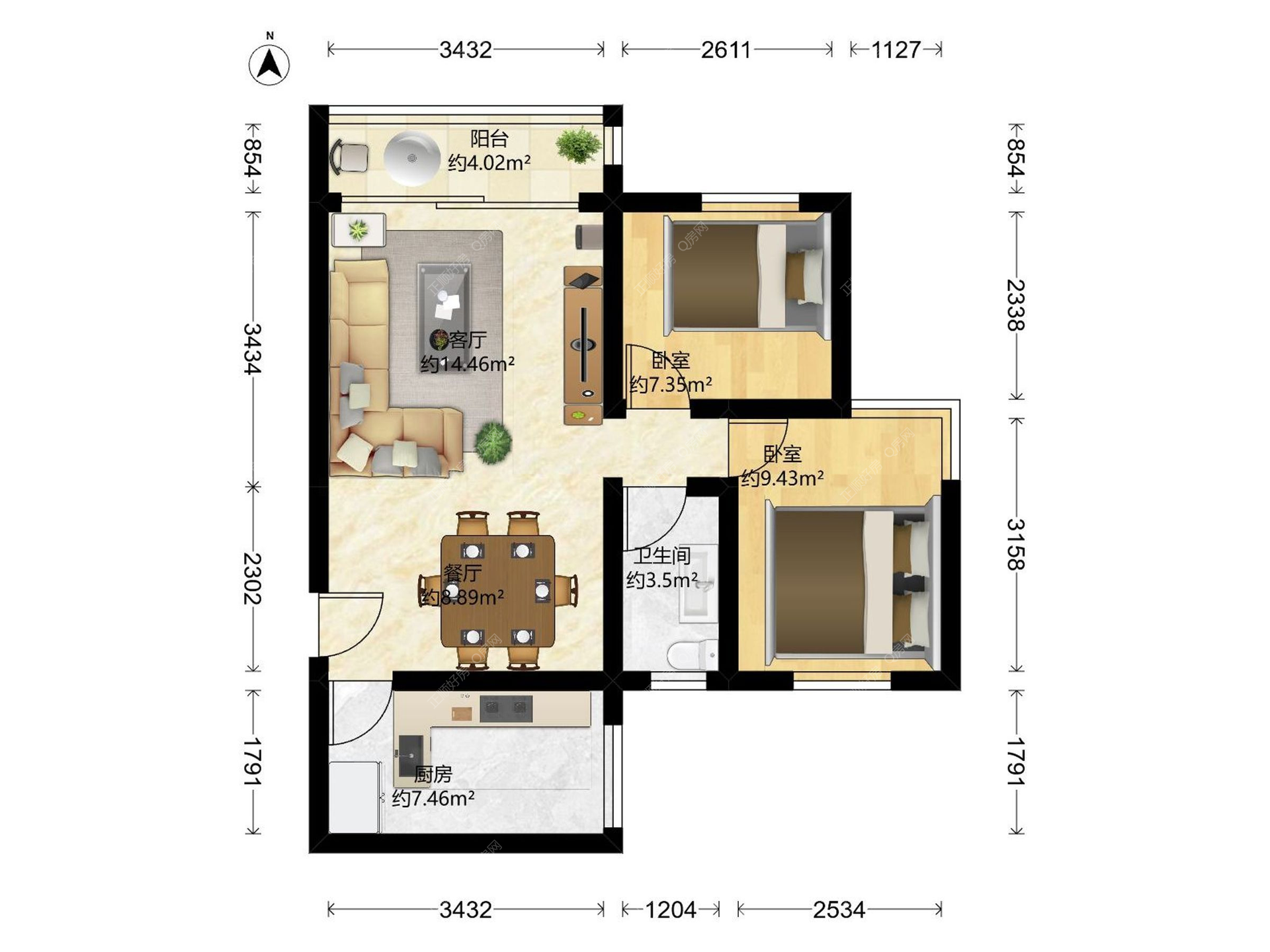 2房2厅1卫