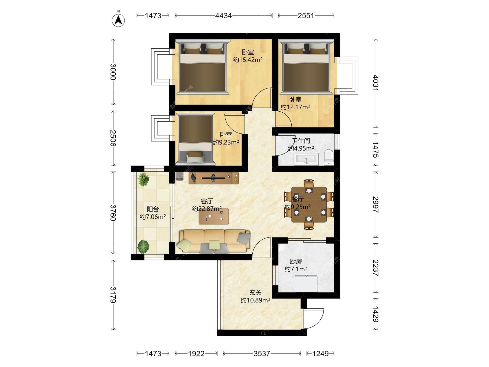 3房2厅1卫