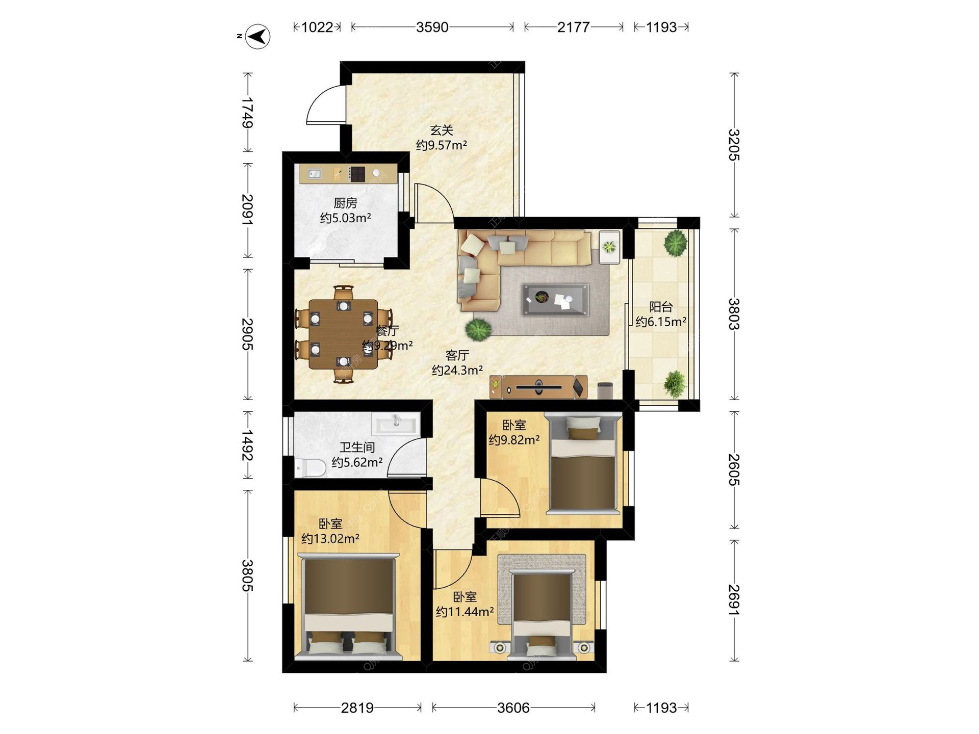 3房2厅1卫