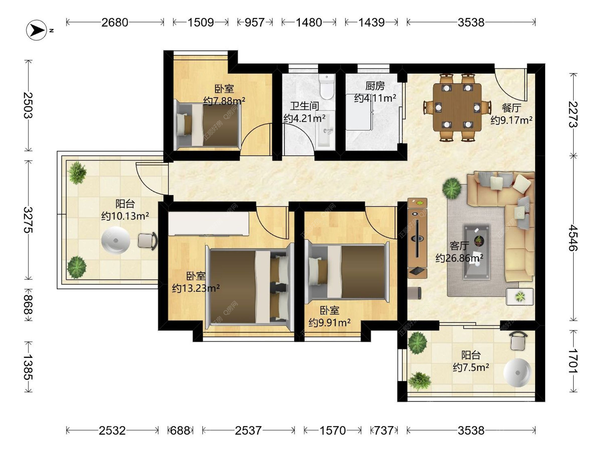 3房2厅1卫