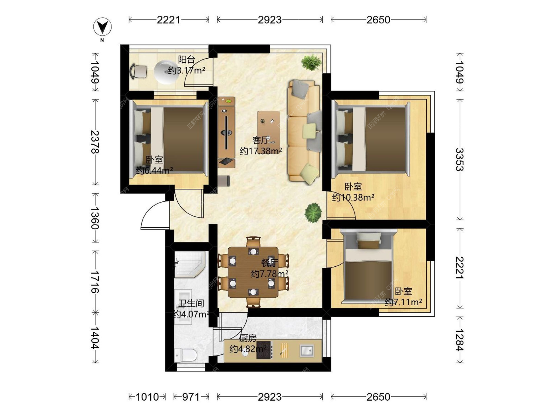 3房2厅1卫