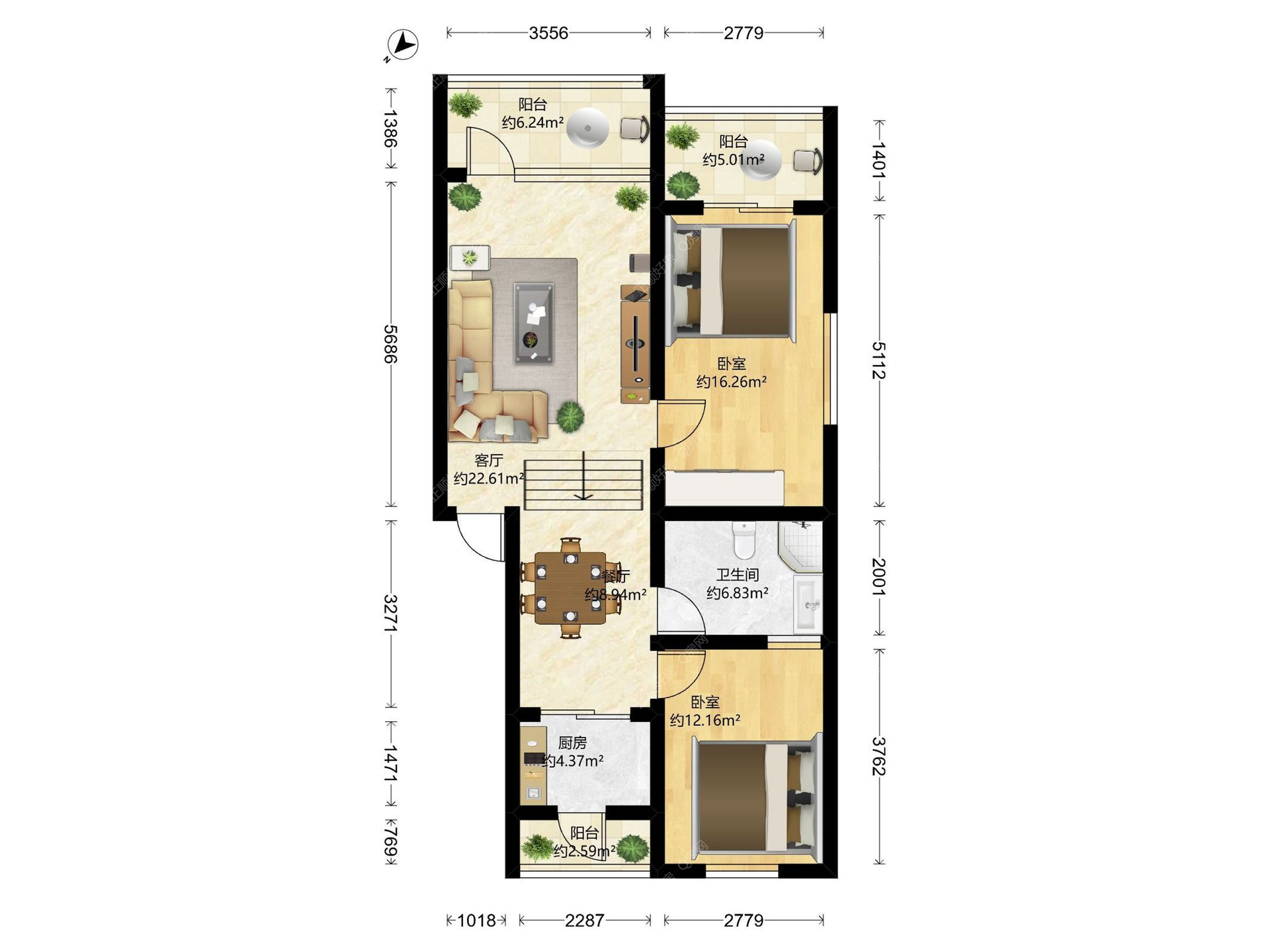 2房2厅1卫