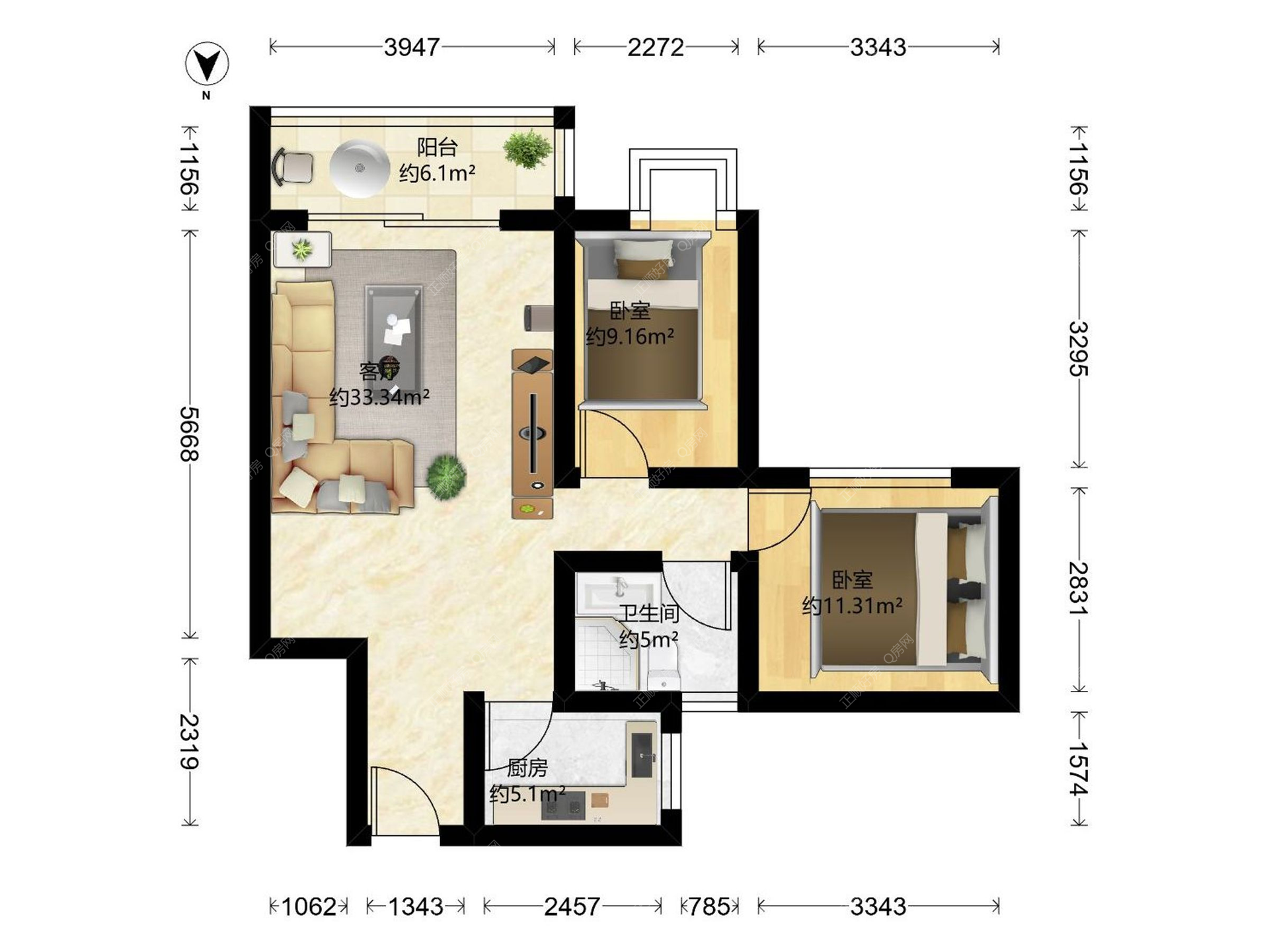 2房2厅1卫