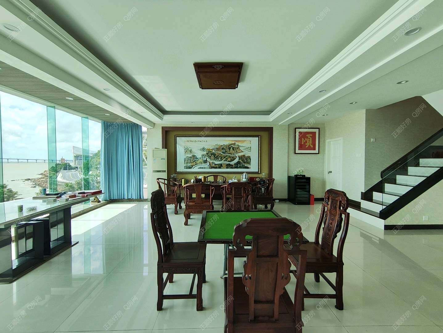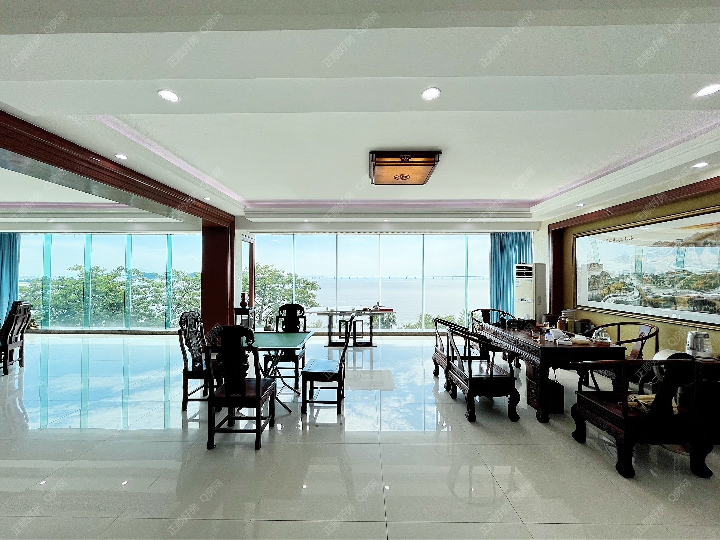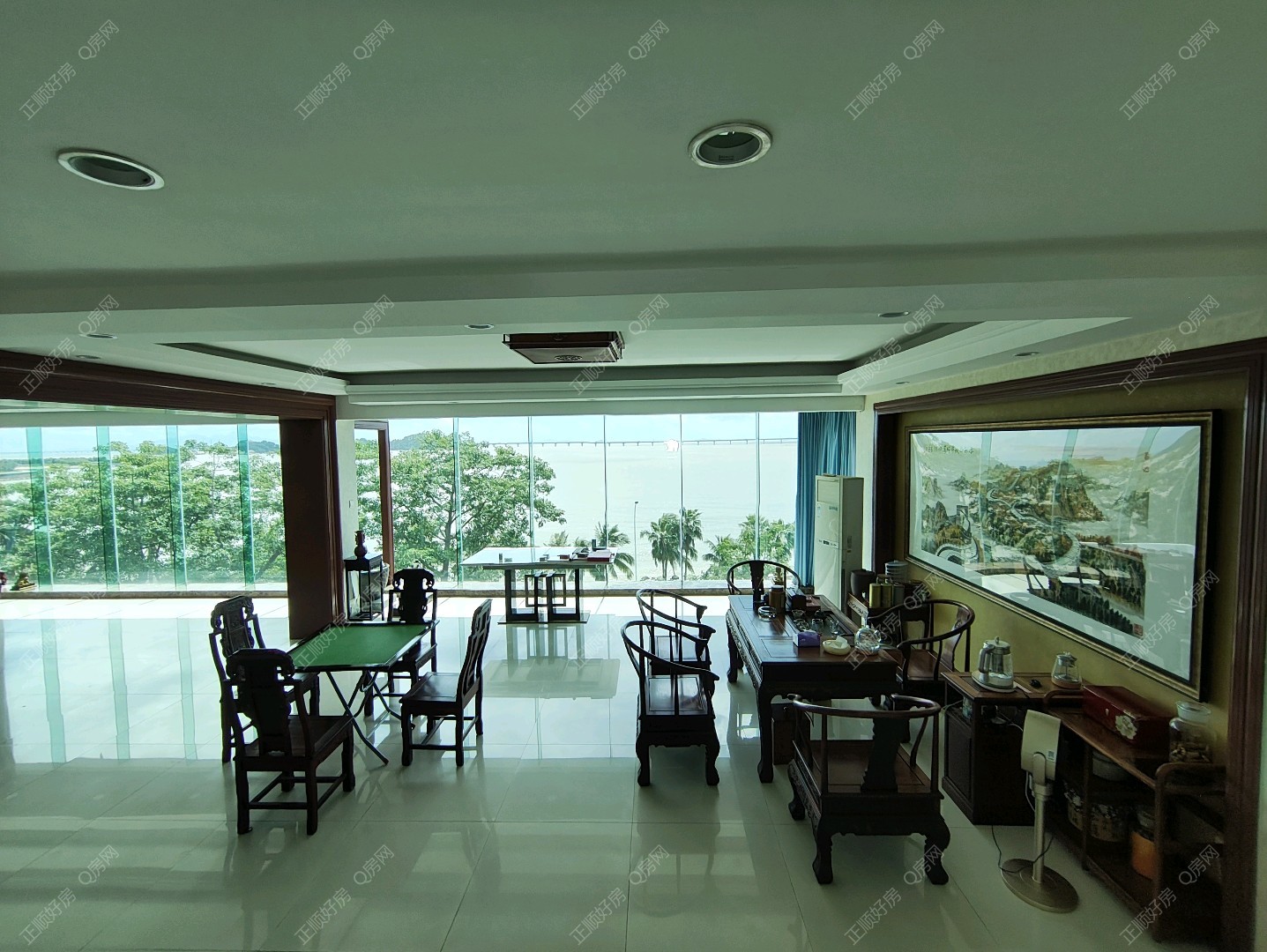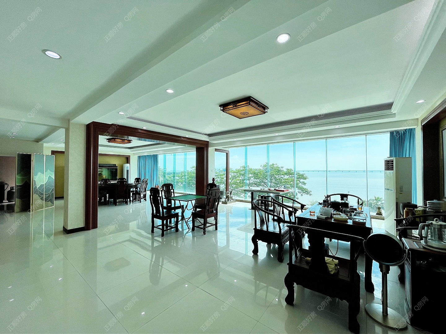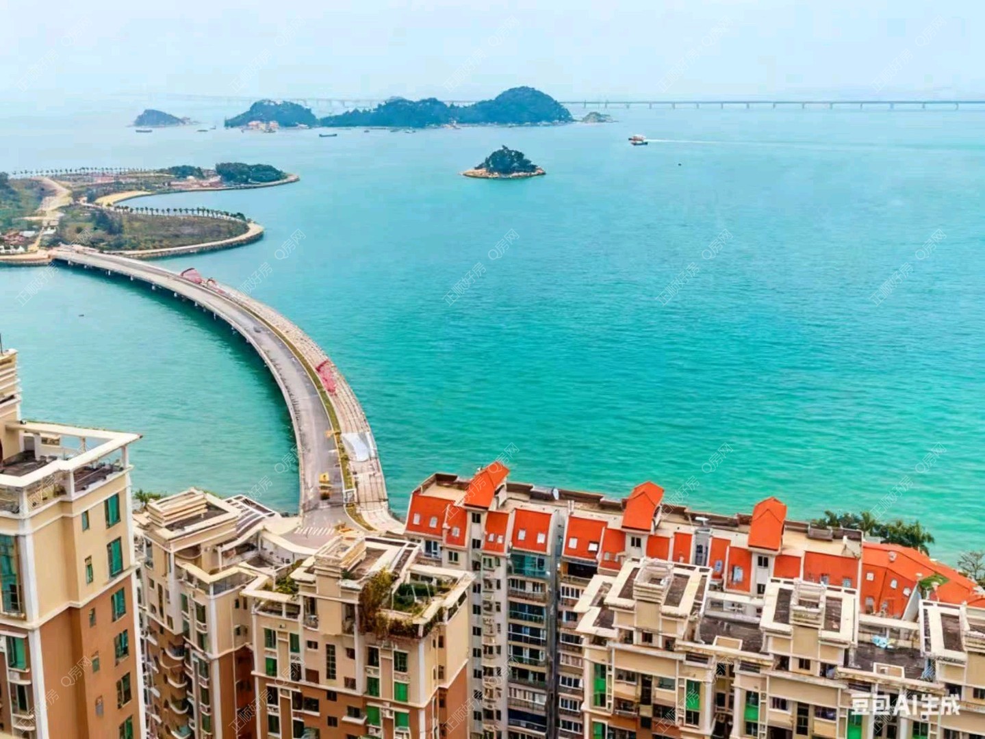 临近九洲港码头,情侣路,青蓝山庄美食街,商业街,超市,此房是2套打通的,实用面积非常高,自带花园,无敌海景,景观非常漂亮