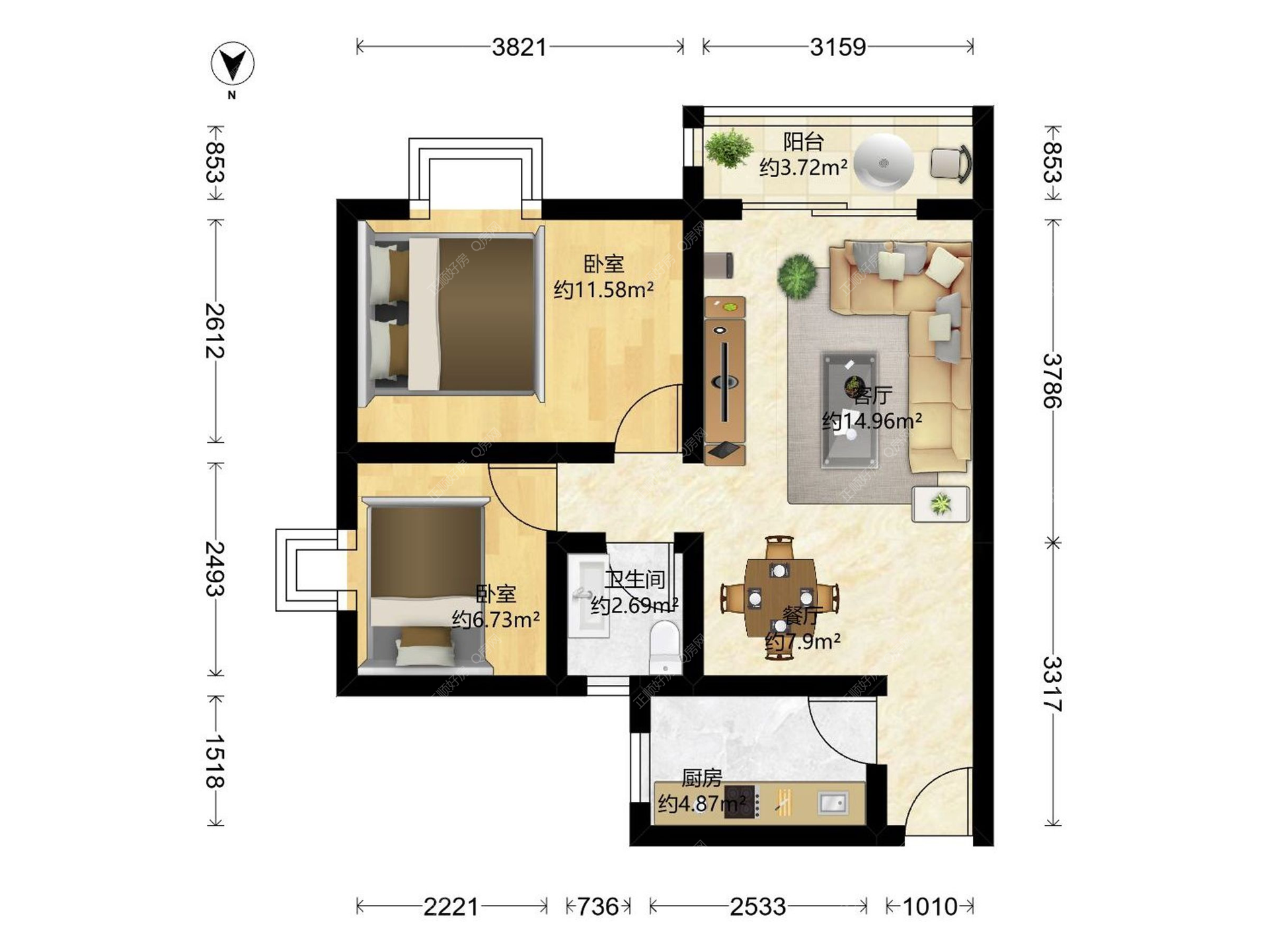 2房2厅1卫
