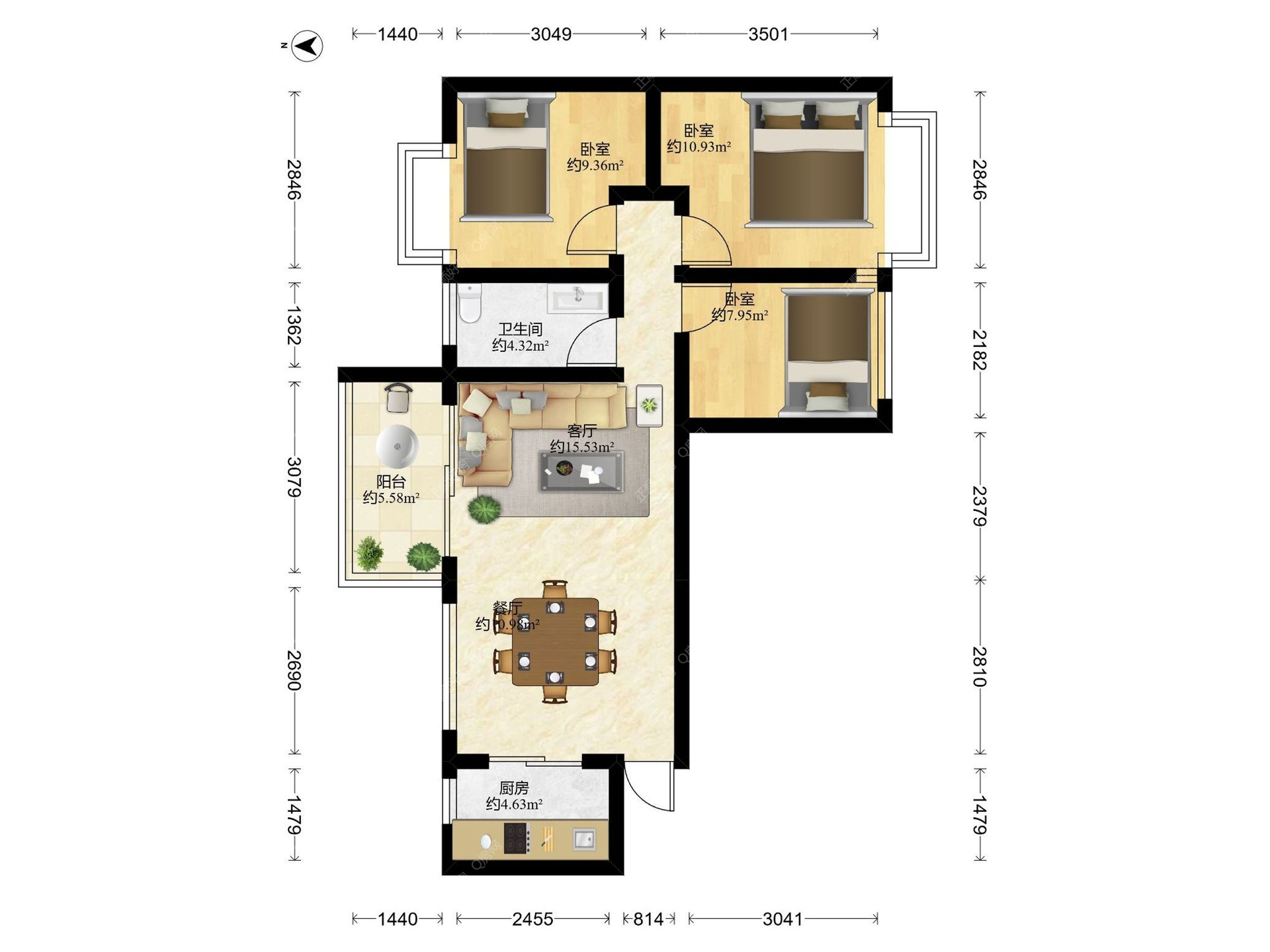 3房2厅1卫