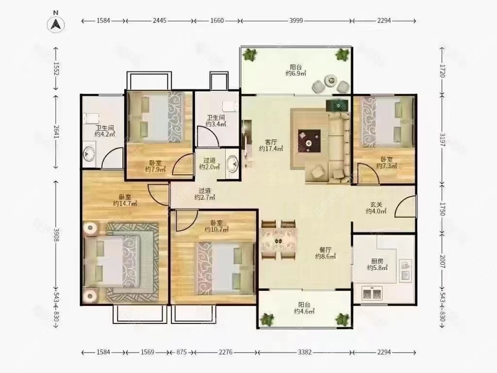 4. 4房2厅2卫.户型好