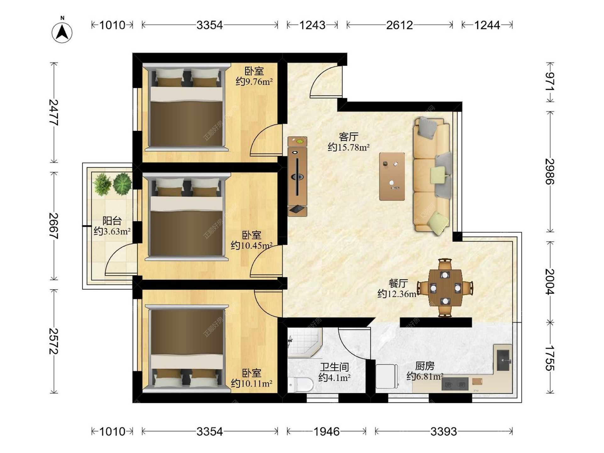 3房2厅1卫