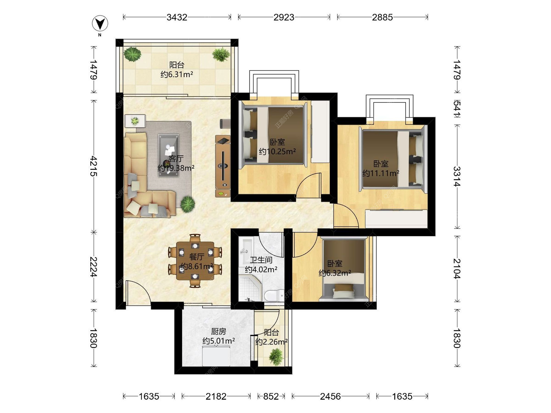 3房2厅1卫