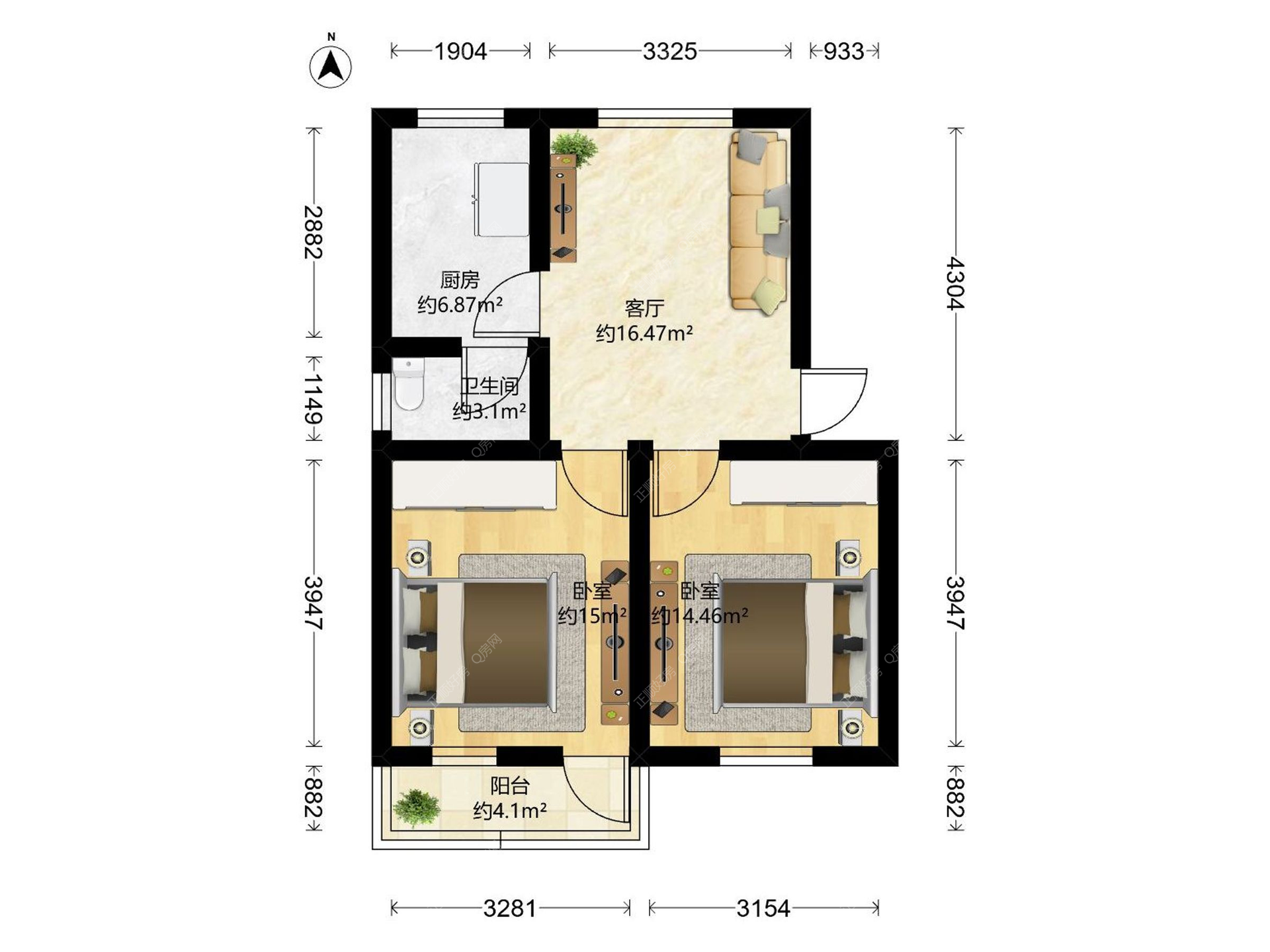 2房1厅1卫