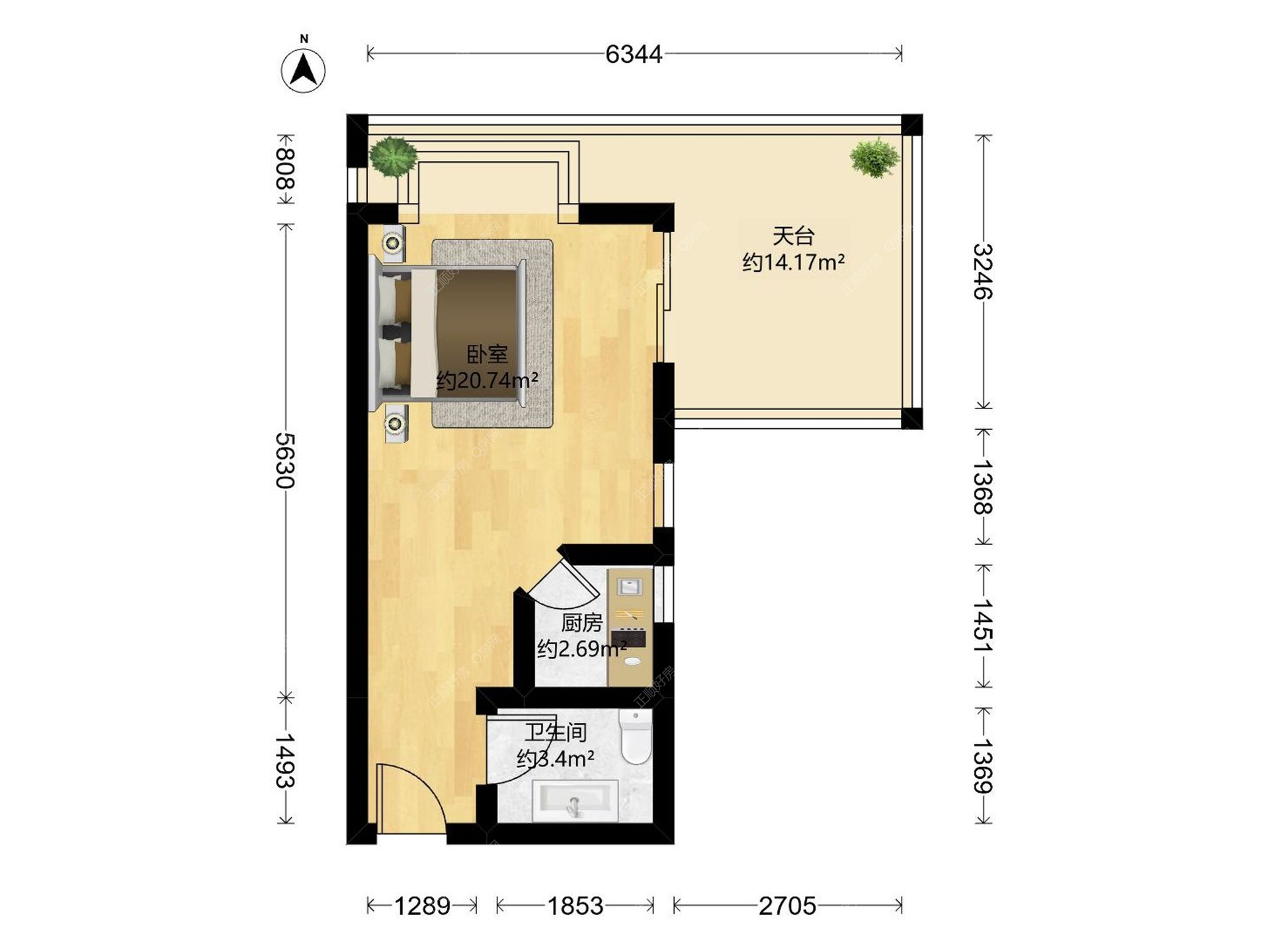 1房0厅1卫